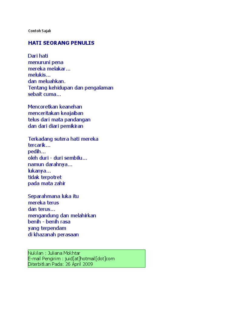 Up to 24 cash back Sajak tergolong dalam puisi moden yang terkeluar daripada ciri-ciri rigid puisi Melayu tradisional. Sukai kami dan bagikan. Menulis sajak adalah kekuatan untuk bertahan hidup.